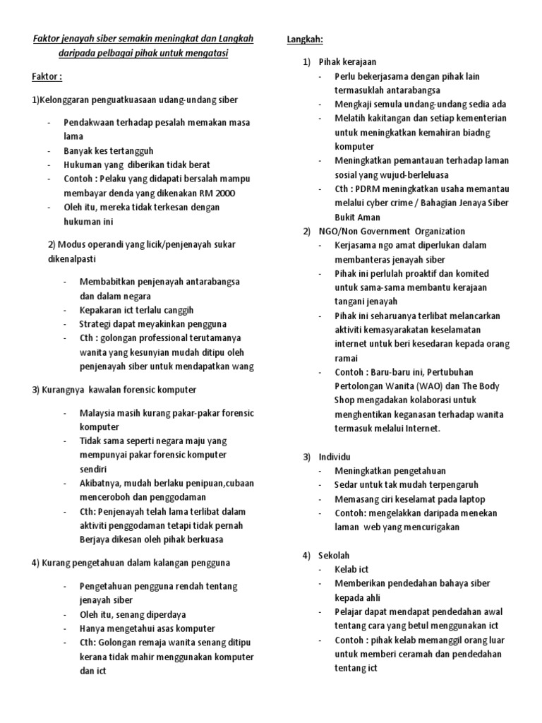 Faktor Jenayah Siber Semakin Meningkat Dan Langkah Daripada Pelbagai Pihak Untuk Mengatasi Pdf